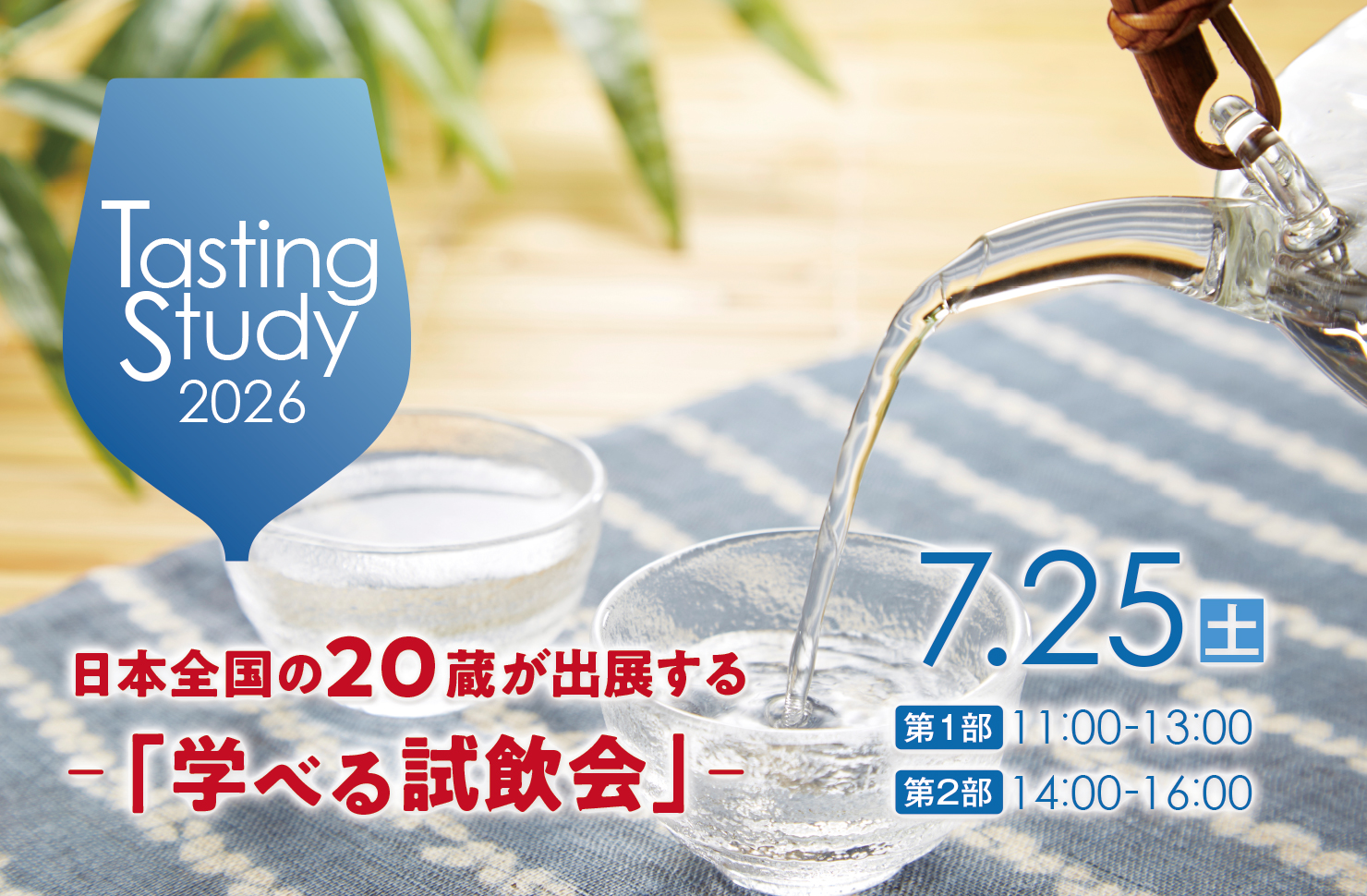 # 🍶 学べる試飲会 | Tasting Study 2026 夏のセールスプロモーション編 🍶 - **イベント趣旨** - ただ飲むだけでなく、「売れる一杯」を実践的に学べる試飲会 - 全国から20蔵が出展し、造り手の想いや商品背景を直接聞ける - 一杯の価値をどう伝えるかを学ぶ貴重な機会...もっと読む