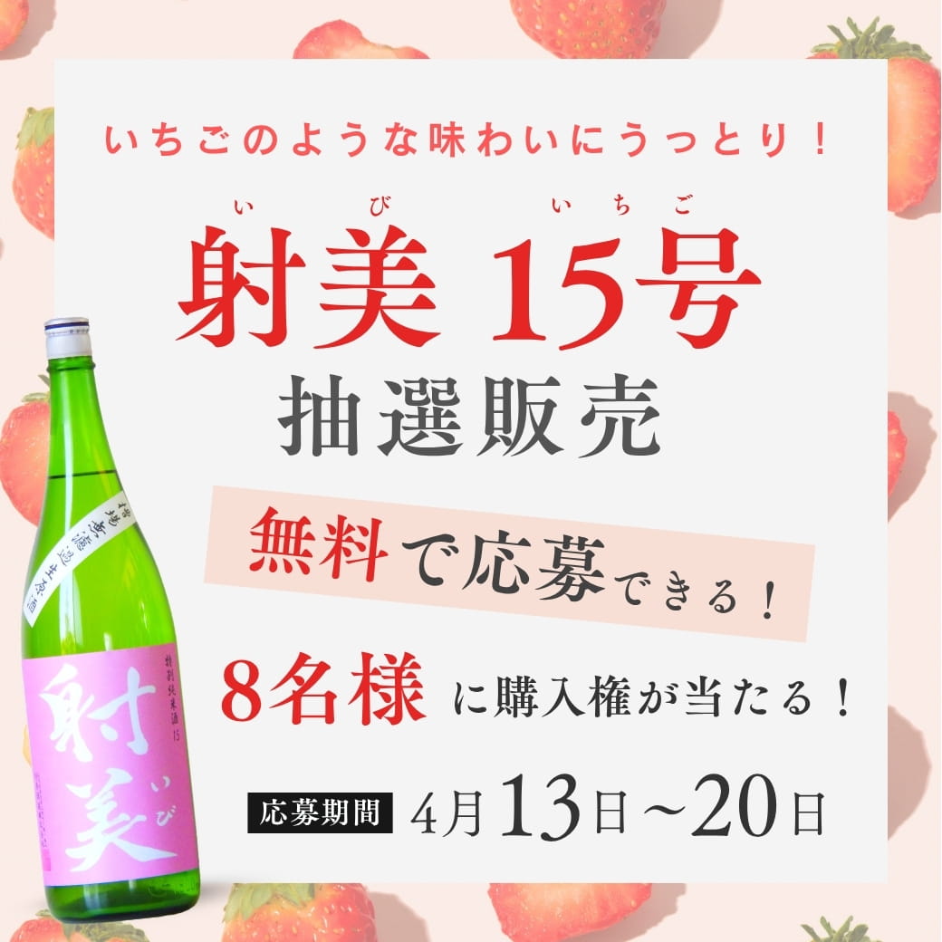 * **URL:** https://reika-sake.com/pages/ibi-campaign ## 日本一小さな酒蔵の入手困難な日本酒をゲットしよう! 「いちご」がテーマの鮮やかなレア酒が登場! 滅多に手に入らない超レア酒 「射美 特別純米15(いちご)」の購入権が当たる抽選販売を開始いたし...もっと読む