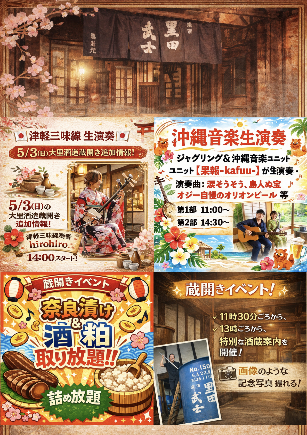 * **URL:** https://www.instagram.com/p/DW5uYC5jws1/?utm_source=ig_web_copy_link&igsh=MzRlODBiNWFlZA== 今年もやります、年に一度の特別な一日🍶✨ 大里酒造の魅力を“まるごと”楽しめる蔵開き! 📅 2...もっと読む