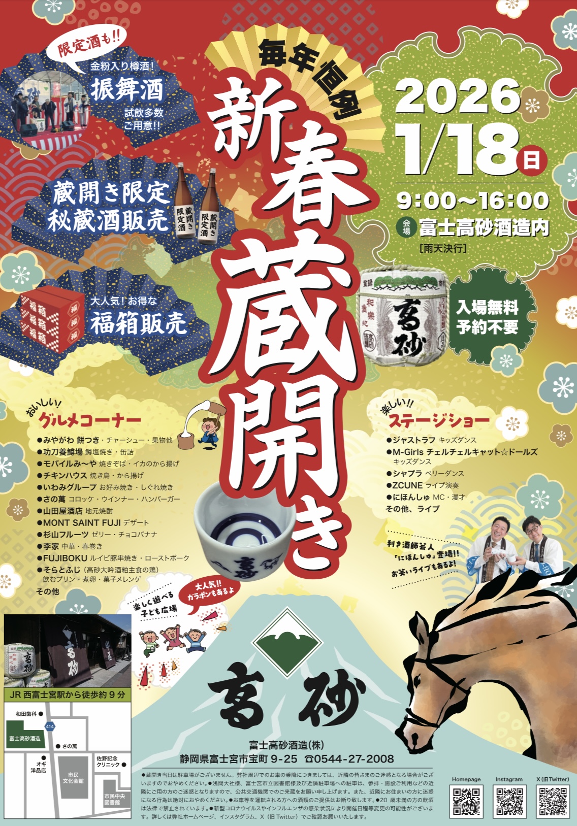 https://fuji-takasago.com/wp-content/uploads/2025/12/IMG_3293-1.jpg ## 📄 IMG_3293-1.jpg # 🎍毎年恒例!新春蔵開きイベント🎍 **開催日:** 2026年1月18日(日) **時間:** 9:00~16:00 ...もっと読む