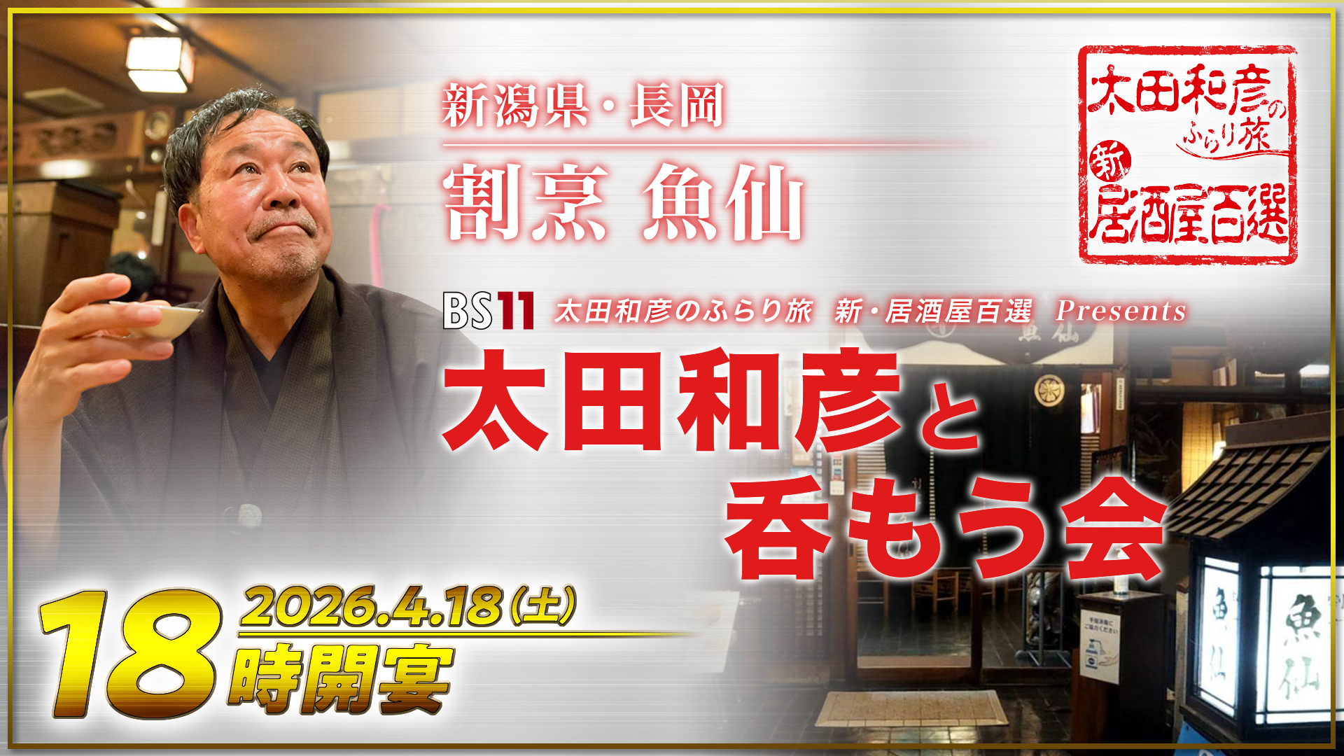 * **会場:** 割烹魚仙(新潟県長岡市殿町1-3-4) * **URL:** https://www.bs11.jp/topics/others/oota-nomouevent-1st/ BS11では、4月18日(土)に太田和彦のふらり旅新・居酒屋百選presents『太田和彦と呑もう会』in新潟県・長岡...もっと読む