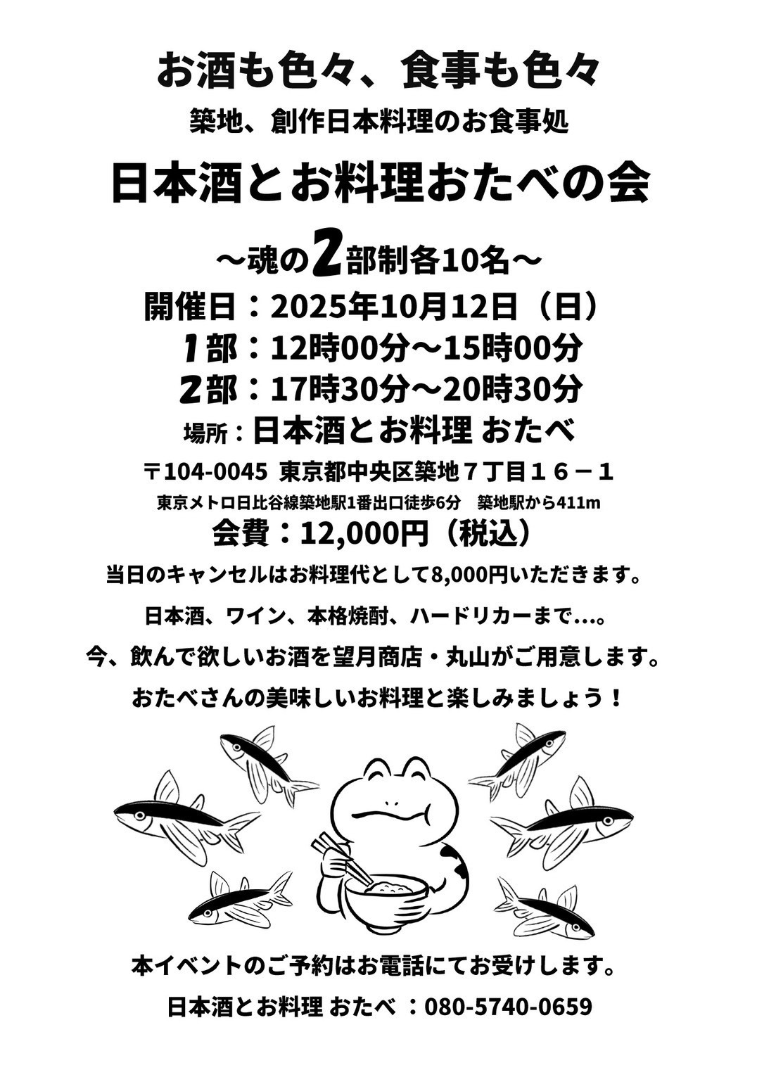 https://www.instagram.com/tsukiji_otabe/?hl=ja 日本酒、ワイン、本格焼酎、ハードリカーまで...。 今、飲んで欲しいお酒を望月商店・丸山がご用意します。 おたべの美味しい料理と楽しみましょう! 本イベントのご予約はお電話にてお受けします。 日本酒とお料理おたべ...もっと読む