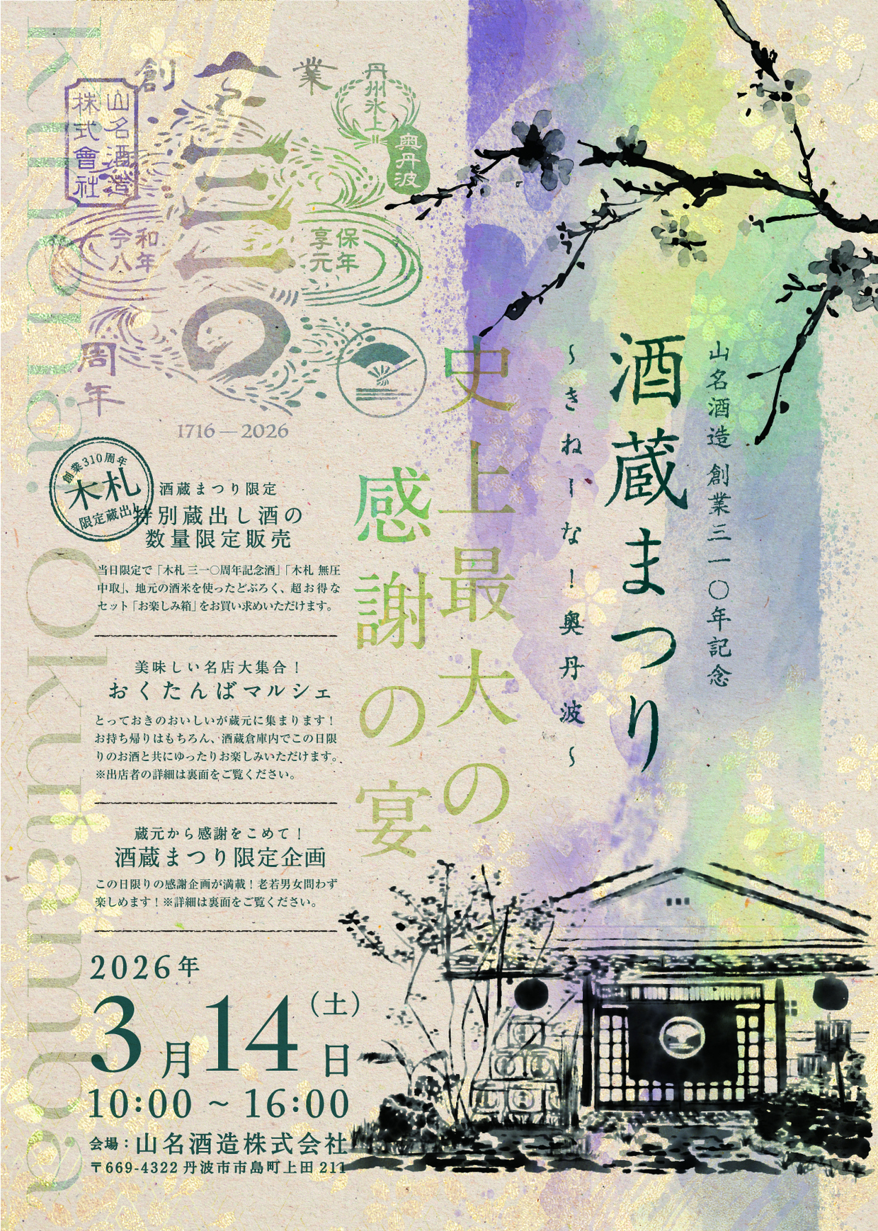 https://www.instagram.com/yamana_sake_brewery/ # 🍶✨ 奥丹波限定酒フェスティバル & 酒蔵まつり ~きねーな!奥丹波~ 🎉 --- ## 📅 開催概要 - **開催日**:2026年3月14日(土) - **時間**:10:00~16:...もっと読む