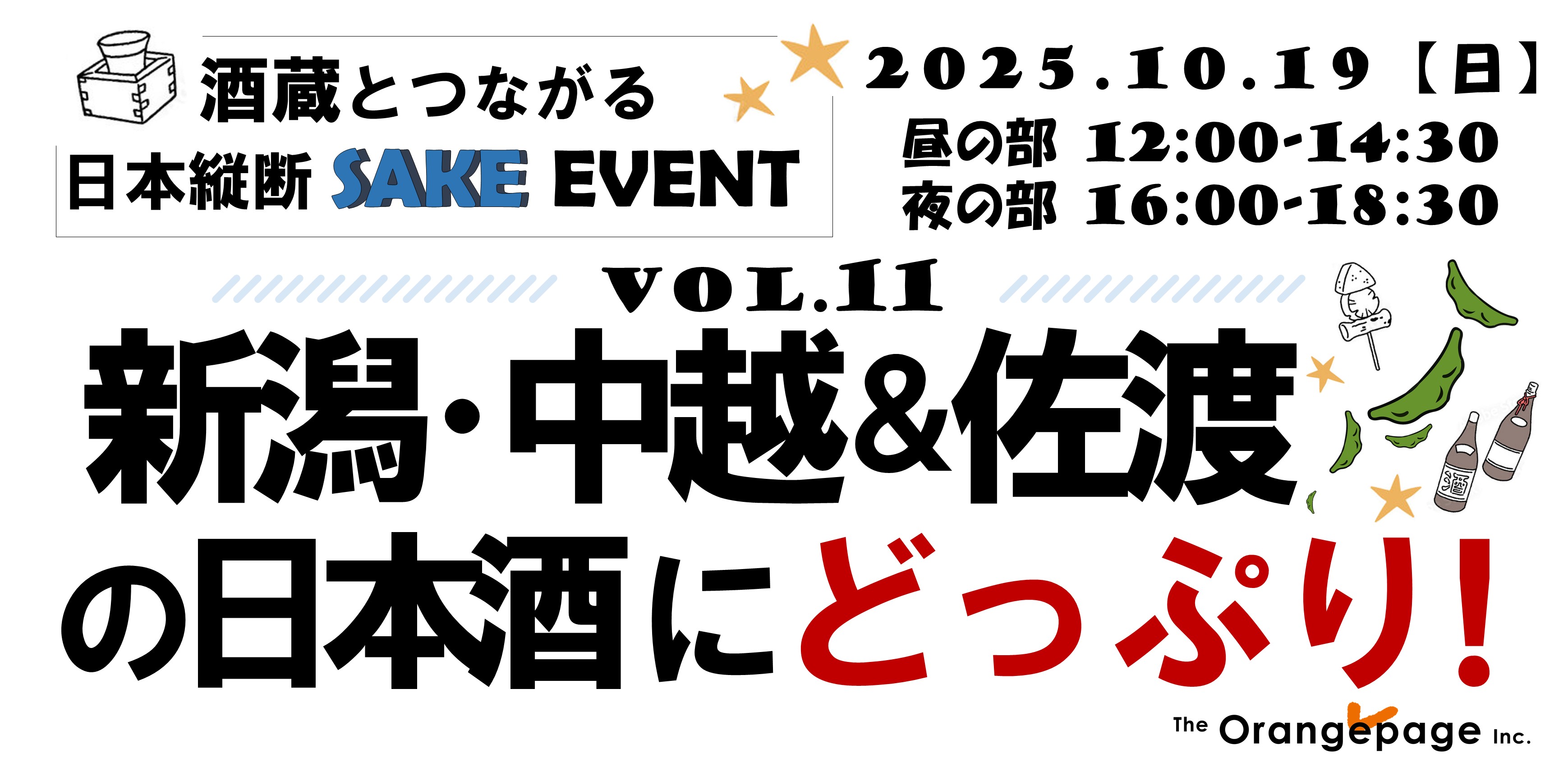全国の酒蔵をエリアごとに切り取り、その地で醸された日本酒とバラエティに富んだおつまみを味わい、地域の魅力を再発見する<K,D,C,,, >のSAKEイベント。11回目の開催は、10月19日(日)。「新潟・中越&佐渡」を取り上げます。