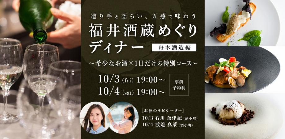 #オススメ #日本酒の日 【10/3(金)、4(土) 開催】「造り手と語らう、五感で味わう」 酒蔵めぐりディナー -舟木酒造編-