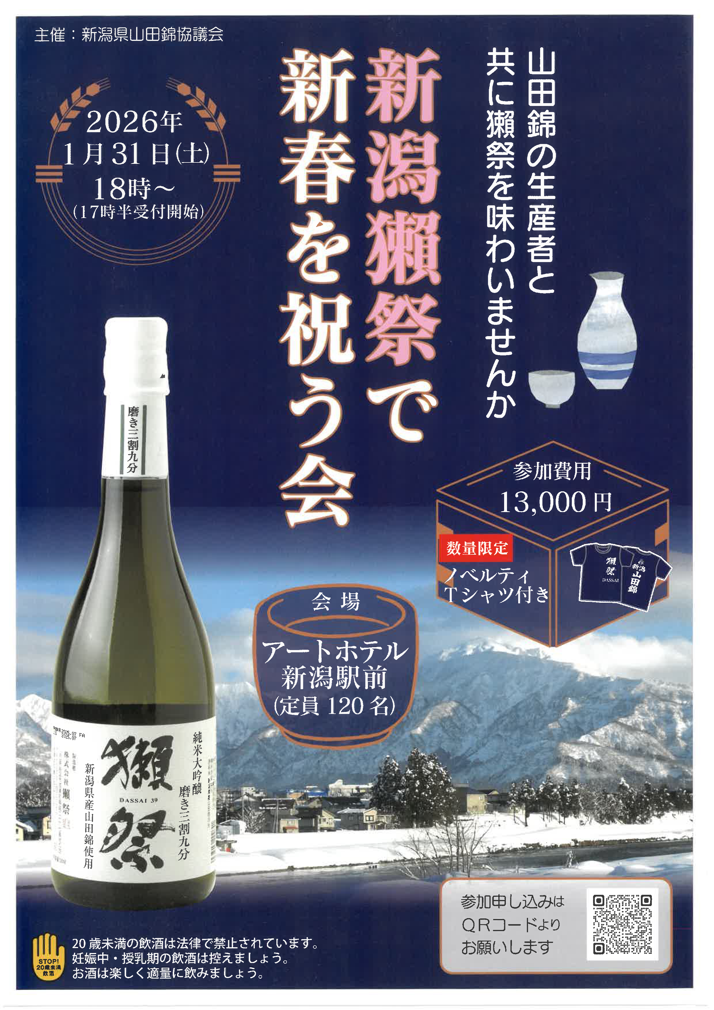 https://amarys-jtb.jp/dassai/ 「新潟獺祭で新春を祝う会」を開催します。 オーソドックスな獺祭をはじめ、 獺祭スパークリング、獺祭焼酎、獺祭梅酒、ニューヨークで醸した「DASSAI BLUE」、獺祭美酔 様々な獺祭が勢ぞろい。 新潟県内の山田錦生産者、獺祭の蔵人と交流できる...もっと読む